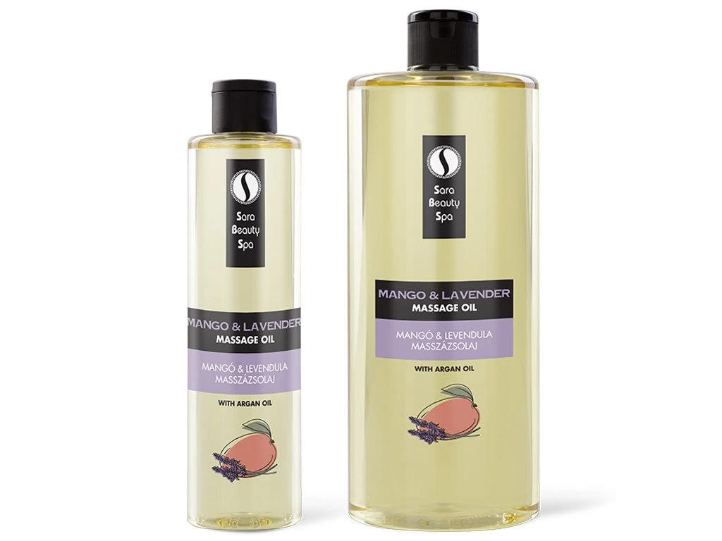 A Sara Beauty Spa mangós-levendulás illatú növényi masszázs olaj értékes természetes anyagokat és növényi kivonatokat tartalmaz. Az argán olaj és az E-vitamin ápolja és puhítja a bőrt.